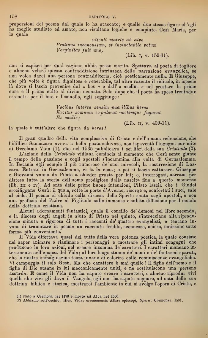 Il gran quadro della vita complessiva di Cristo e dell'umana redenzione, che l'idillico Sannazaro aveva a bella posta schivato, non ispaventò l'ingegno pur mite di Gerolamo Vida (1), che nel 1535 pubblicava i sei libri della sua Crisiiade (2).
