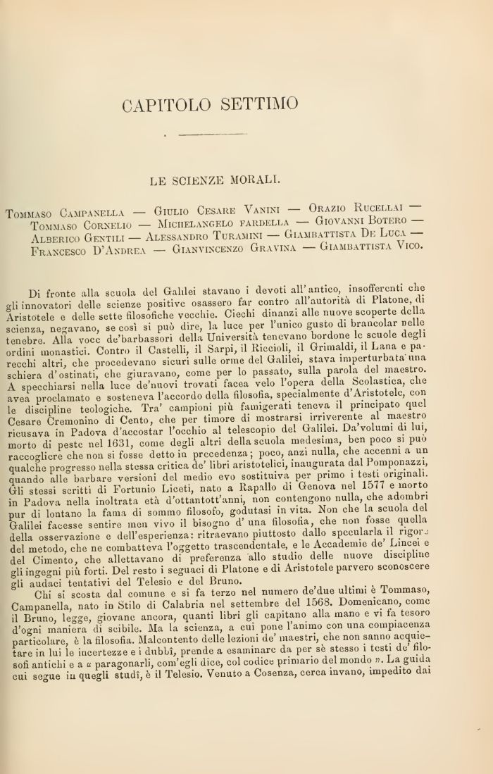 Tommaso Campanella - Giulio Cesare Vanini - Orazio Rucellai -Tommvso Cornelio — MiciJlangelo fardella — Giovanni Boterò — Alberico Gentili — Alessandro Turamini — Giambattista De Luca — Francesco D'Andrea — Gianvincenzo Gravina — Giambattista \ ico.