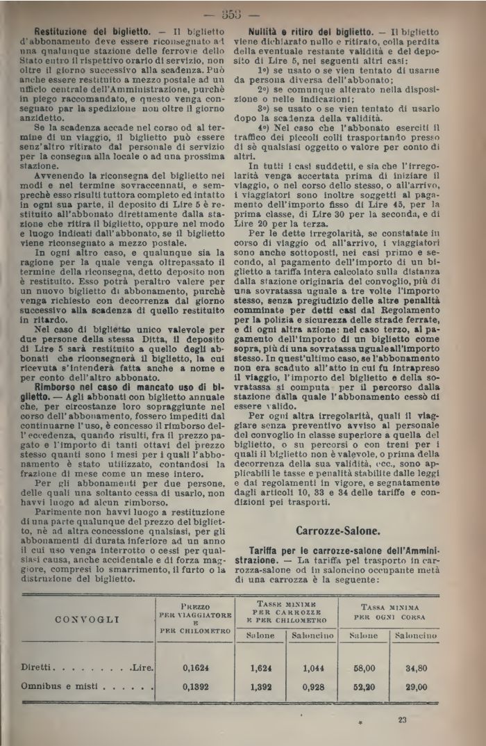 Nel caso di biglietto unico valevole per due persone della stessa Ditta, il deposito di Lire 5 sarà restituito a quello degli abbonati che riconsegnerà il biglietto, la cui ricevuta s'intenderà fatta anche a nome e per conto dell'altro abbonato.
