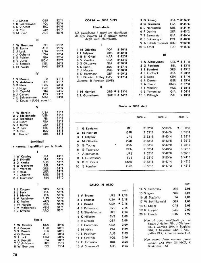 18 C Papanikolaou GRE 4,40 Non si sono Qualificati per la finale: M Otsubo GIÀ, P Cop-pejans BEL, H Morita GIÀ, D 17,29), L Akka Samsam MAR, M Lucking GRB, He-Kun Rim SKO Assenti: E Piatkowski POL, G 3 U Beyer GER • 68,09 4 Y Nikulin URS 67,69 5 Y Bakarinov URS 66,72 6 H Connolly USA 66,65