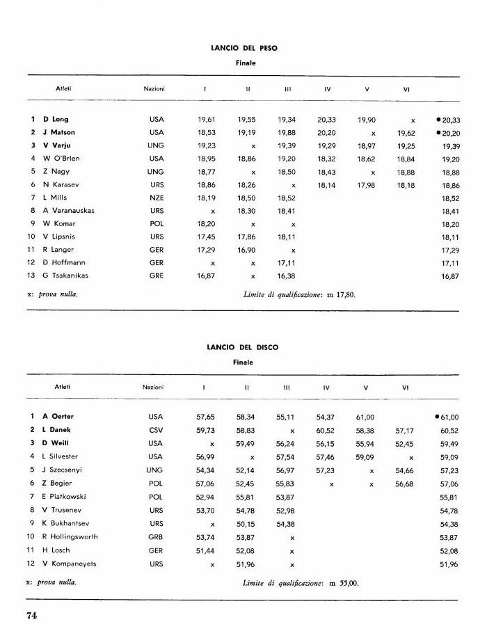 1 R Klim URS 67,19 64,64 68,59 69,74 68,81 68,17 • 69,74
