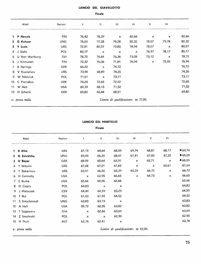Atleti Nazioni 100 m Salto in lungo Lancio del peso Salto in alto 400 m 110 hs Lancio del disco Salto con l'asta Lancio del giav. 1500 m Totale punti