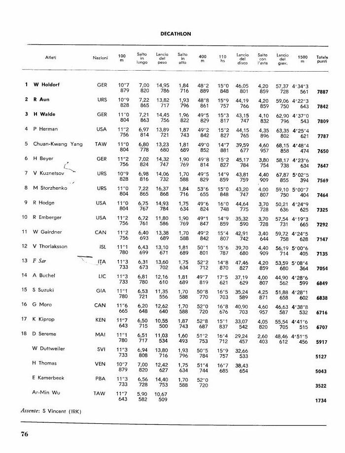 ": primato mondiale eguagliato. 5 G Popova URS 11 "8 chell (PAN)