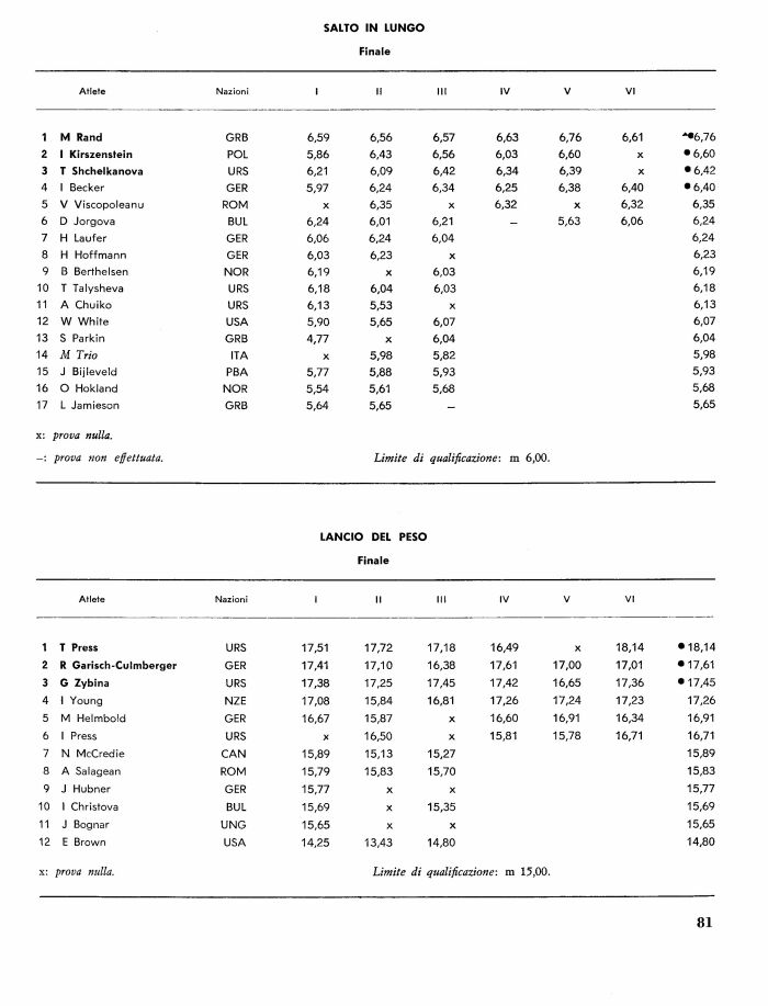 x: prova nulla. Limite di qualificazione: m 50,00.