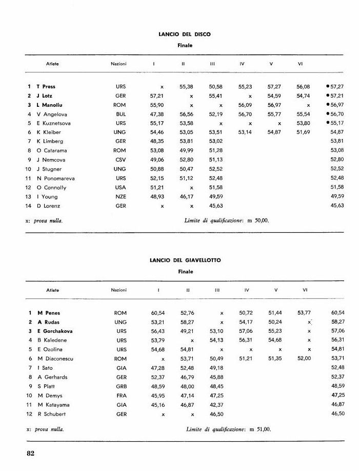 (1) Gara di nuovo inserimento. Il record olimpico è stato così stabilito da I Press (URS) con punti 5246.