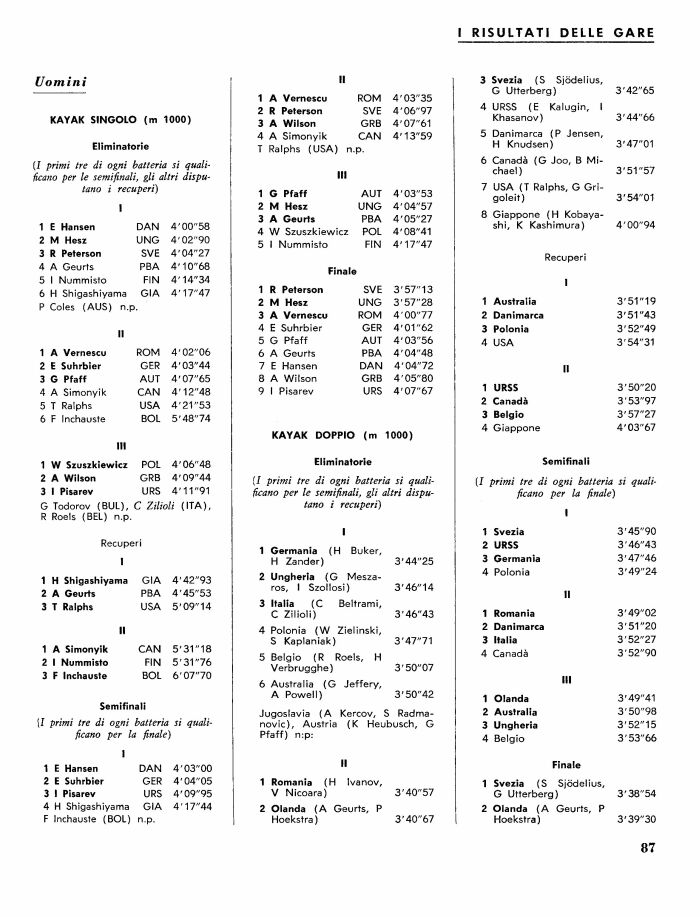 KAYAK SINGOLO (m 1000) 2 R Peterson SVE 4'06"97 3 A Wilson GRB 4'07"61 4 URSS (E Kalugin, I Khasanov) 3'44"66