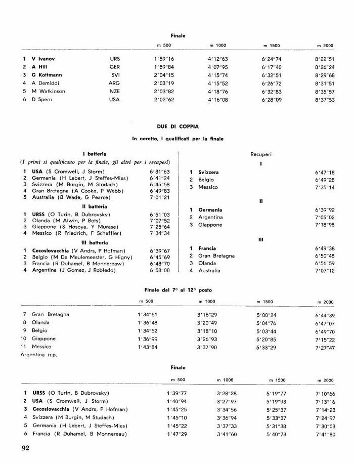 1 URSS (O Turin, B Dubrovsky) 2 Olanda (M Alwin, P Bots) 3 Giappone (S Hosoya, Y Murase) 6 '51 "03 7'07"52 7'25"64 2 Argentina 3 Giappone 7'05"02 7'18"98