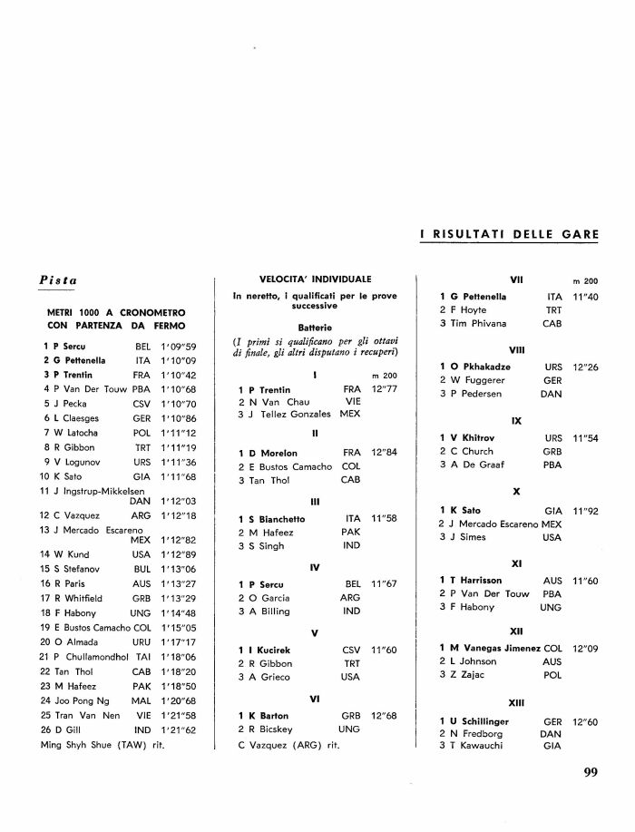 16 R Paris AUS 1'13"27 1 P Sercu BEL 11 "67 1 T Harrisson AUS 1 1 "60