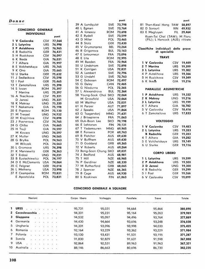 2 3 L Latynina P Astakhova URS URS 76,998 76,965 44 B 45 V Stolz GER Grymonprez BEL 73,430 73,264 Classifiche individuali delle prove