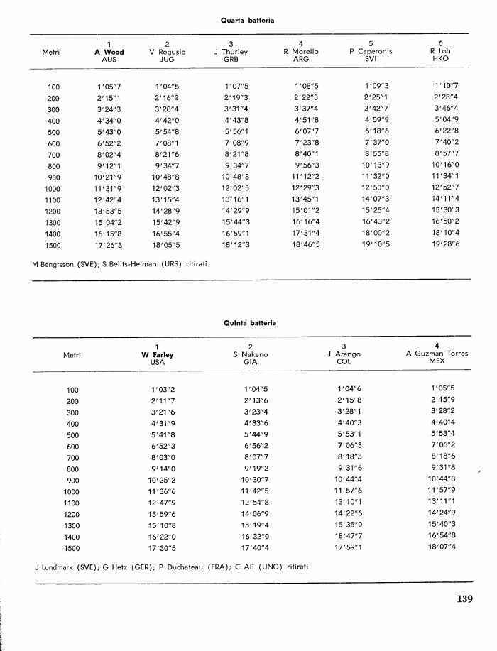 1500 17'26"3 18'05"5 18'12"3 18'46"5 19'10"5 19'28"6