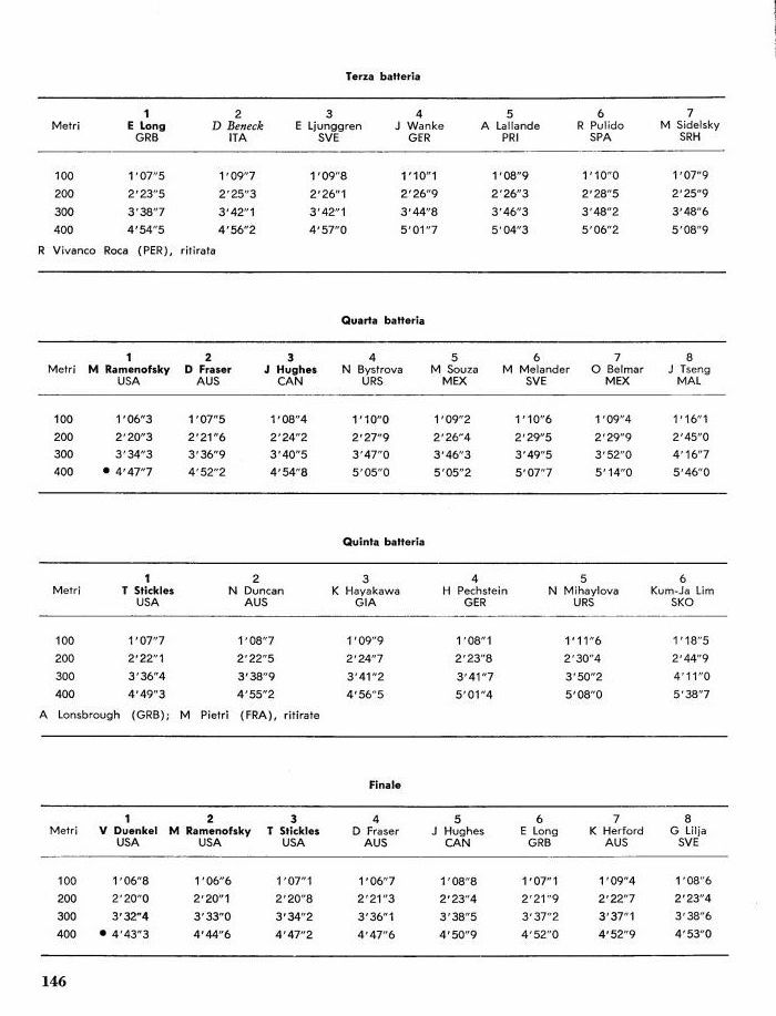 400 • 4'43"3 4'44"6 4'47"2 4'47"6 4'50"9 4'52"0 4'52"9 4'53"0