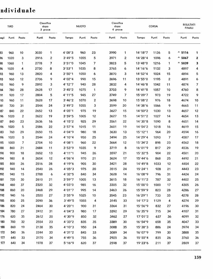 TIRO Classifica dopo 3 prove NUOTO Classifica dopo 4 prove CORSA RISULTATI FINALI