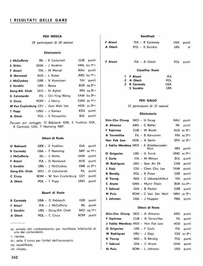 ac: arresto del combattimento per manifesta inferioritą di J Fabila Mendoza O Grigoriev MEX - Hon Pak Law URS - F Zurlo HOK punti ITA punti
