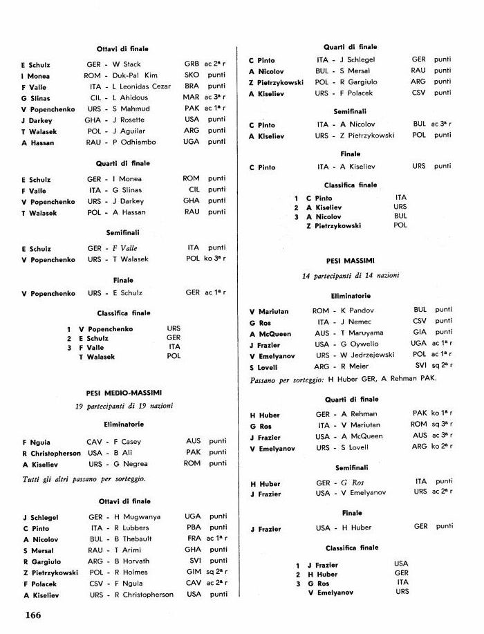 A Hassan RAU - P Odhiambo UGA punti A Kiseliev URS - Z Pietrzykowski POL punti