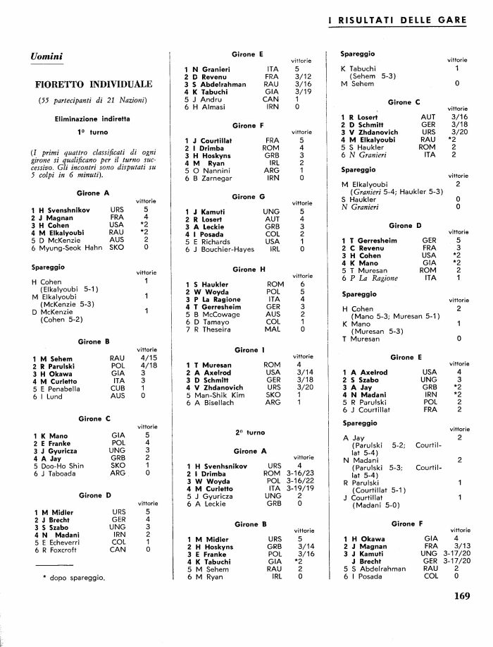 1 H Svenshnikov URS 5 vittorie 1 J Kamuti UNG 5 N Granieri 0