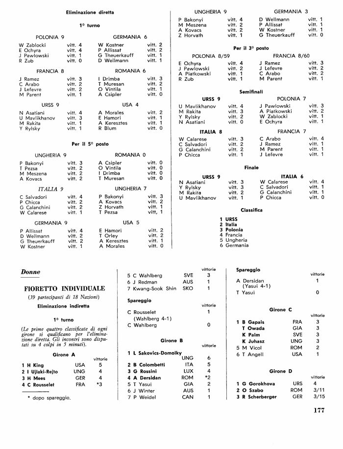 ITALIA 9 UNGHERIA 7 Y Rylsky vitt. 3 C Salvadori vitt. 1