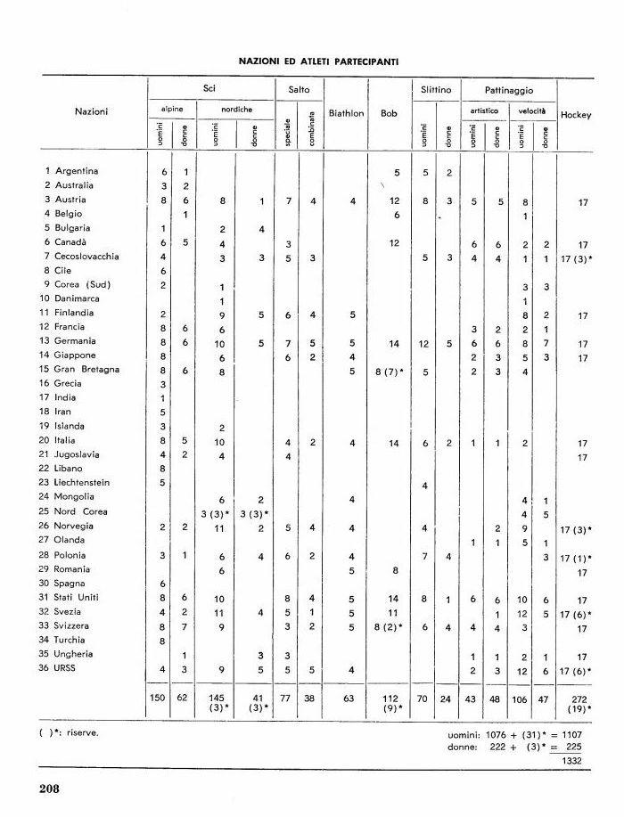NAZIONI ED ATLETI PARTECIPANTI