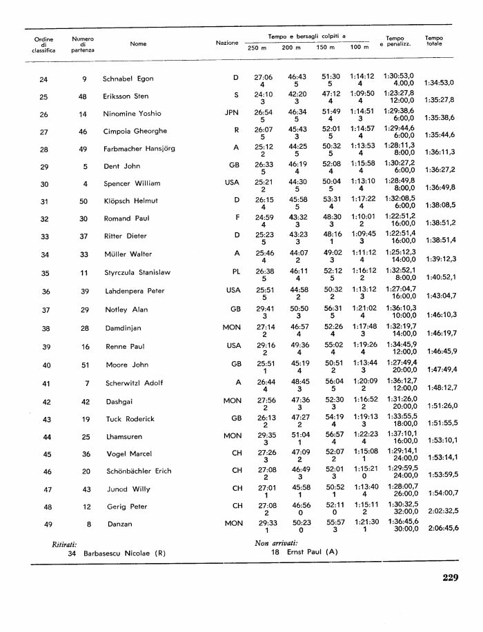 Ordine di classifica Numero di partenza Nome Nazione Tempo e bersagli colpiti a Tempo e penaiizz. Tempo totale