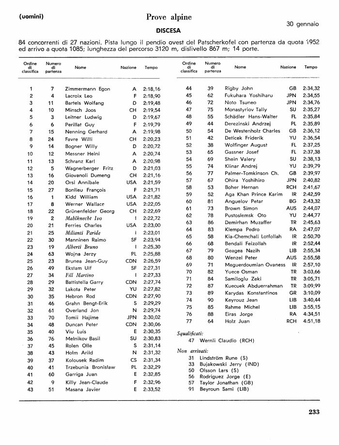 42 9 Killy Jean-Claude F 2:32,96 57 Taylor Jonathan (GB)