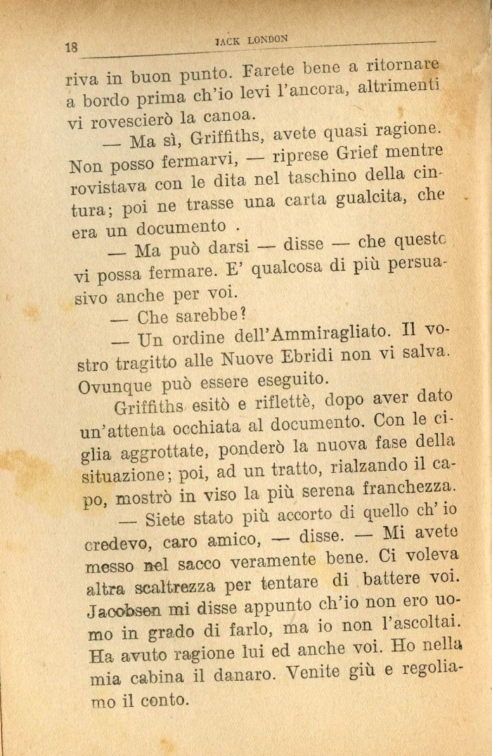 — Ma sì, Griffìths, avete quasi ragione. Non posso fermarvi, — riprese Grief mentre rovistava con le dita nel taschino della cintura; poi ne trasse una carta gualcita, che era un documento .