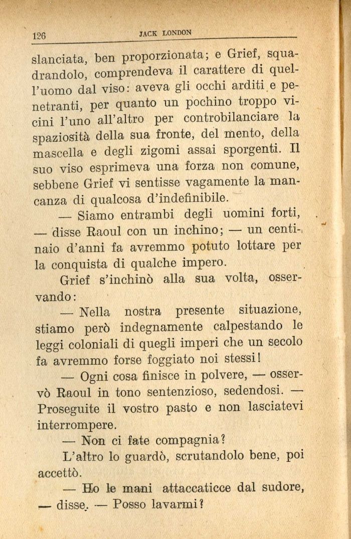 — Nella nostra presente situazione, stiamo però indegnamente calpestando le leggi coloniali di quegli imperi che un secolo fa avremmo forse foggiato noi stessi!