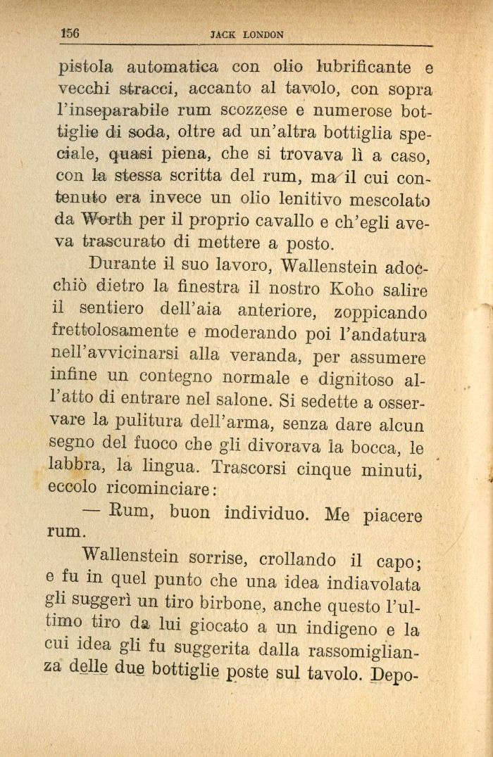 Wallenstein sorrise, crollando il capo; e fu in quel punto che una idea indiavolata gli suggerì un tiro birbone, anche questo l'ultimo tiro da lui giocato a un indigeno e la cui idea gli fu suggerita dalla rassomiglianza delle due bottiglie poste sul tavolo. Depo-