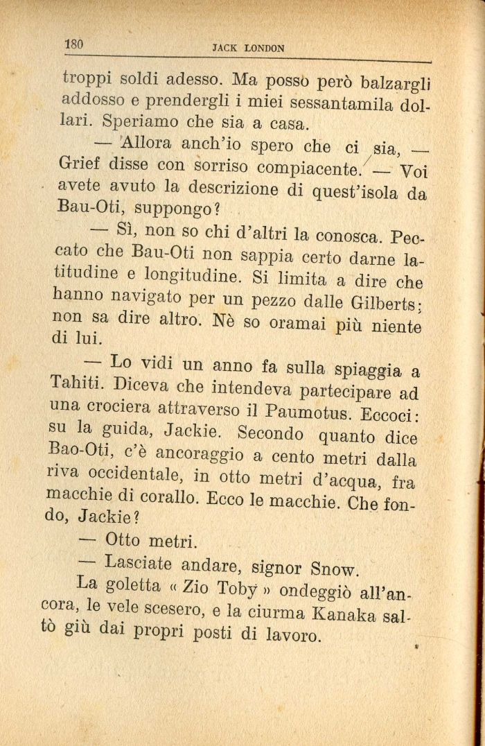 — Allora anch'io spero che ci sia, — Grief disse con sorriso compiacente. — Voi avete avuto la descrizione di quest'isola da Bau-Oti, suppongo?