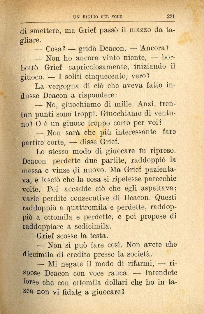 — Non ho ancora vinto niente, — borbottò Grief capricciosamente, iniziando il giuoco. — I soliti cinquecento, vero?