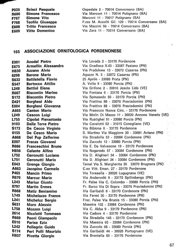 165 ASSOCIAZIONE ORNITOLOGICA PORDENONESE