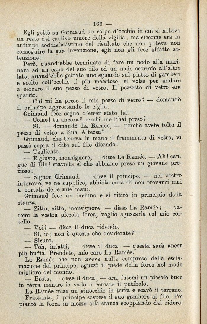 La Ramée che non aveva nulla compreso della esclamazione del principe, aguzzò il piede della forca nel modo migliore del mondo.