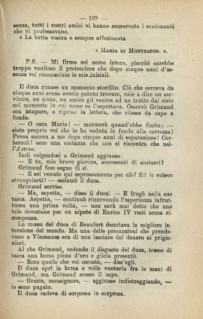 Al che Grimaud, vedendo il disgusto del duca, trasse di tasca una borsa piena d'oro e gliela presentò.