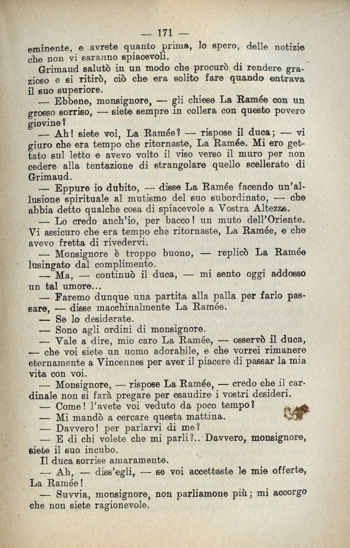 — Monsignore è troppo buono, — replicò La Ramée lusingato dal complimento.