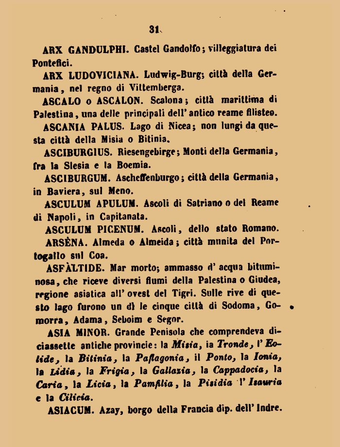 ASIA MINOR. Grande Penisola che comprendeva diciassette antiche provincie : la Mista, ia Tronde> l'Eo-lidej la Bitinta, la Patagonia, il Ponto, la Ionia9 la Lidia, la Frigia, la Galla%ia, la Cappadocia, la Caria, la Licia, la Pam fili a, la Pisidia T 1sauria e la Cilicia.