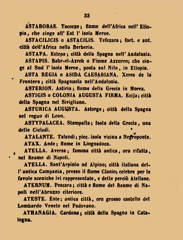 ATAX. Ande; fiume in Linguadoca. i ATELLA. Aversa ; famosa città antica, ora rifatta, nel Reame di Napoli.