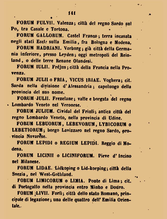 FORUM JULIl o FRIÀ, VICUS 1RIAE. Voghera; cit. Sarda nella divisione d'Alessandria; capoluogo della provincia del suo nome.