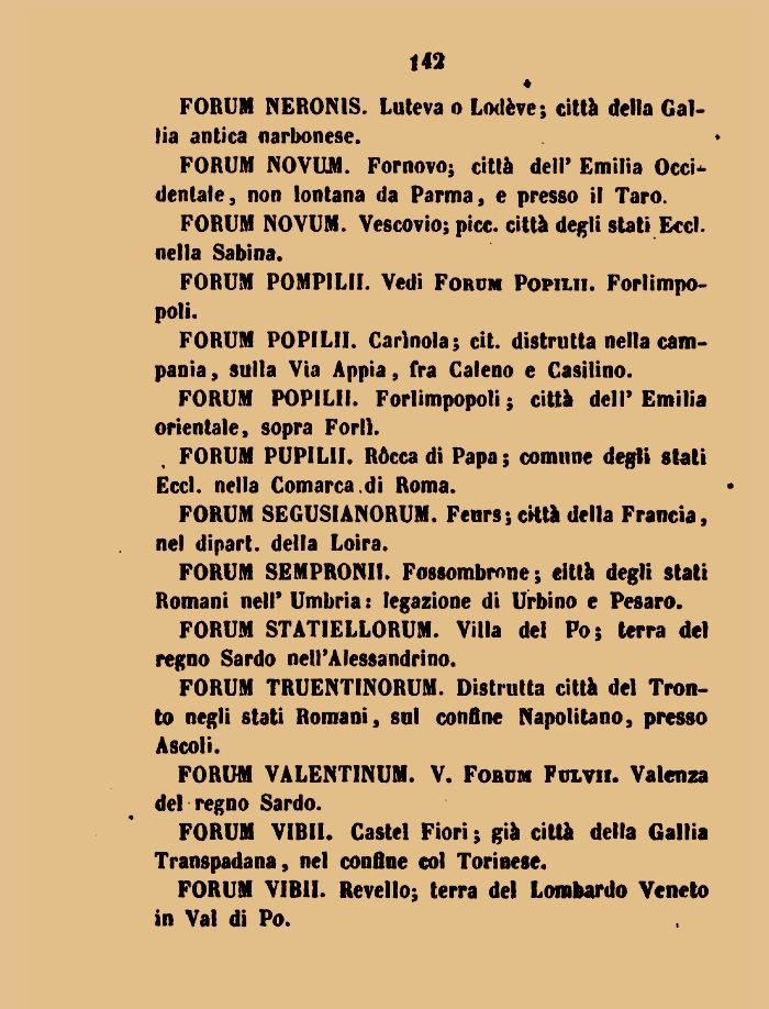 FORUM NOVUM. Fornovo; città dell' Emilia Occidentale, non lontana da Parma, e presso il Taro.