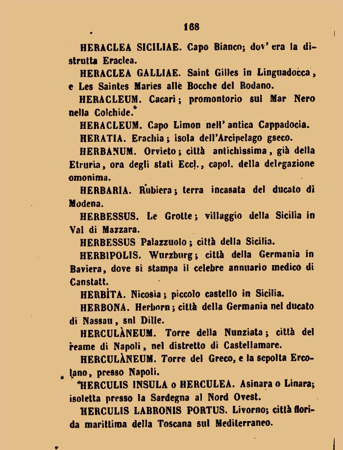 *HERCULIS INSULA o HERCULEA. Asinara o Linara; isoletta presso la Sardegna al Nord Ovest.