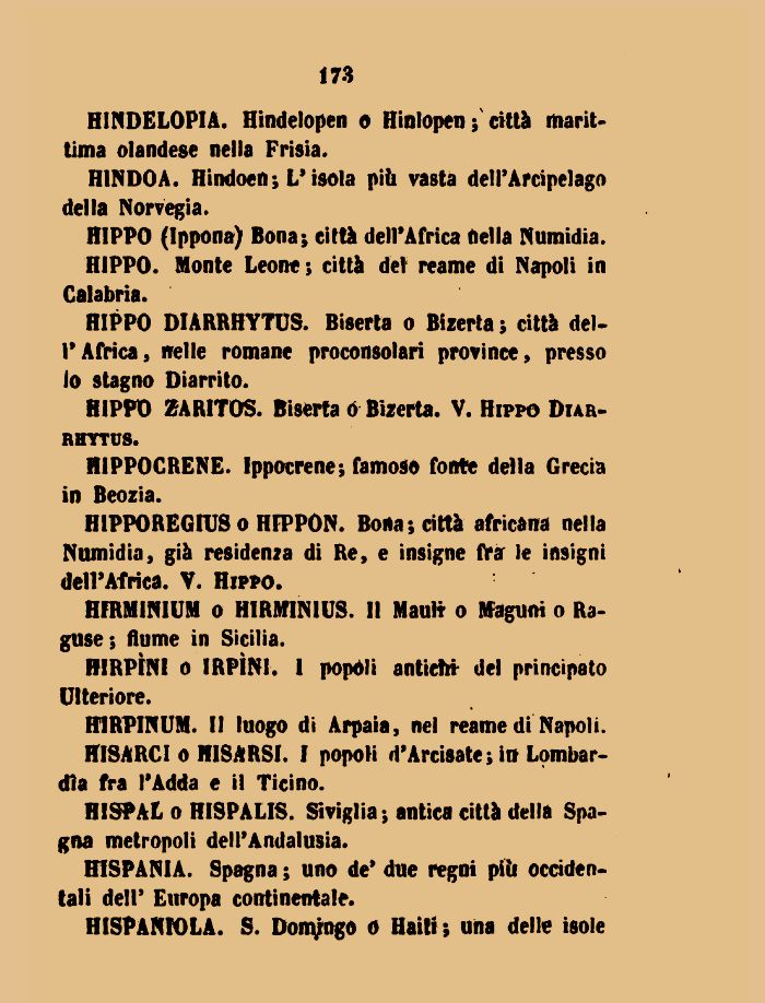 HIPPO DIÀRRHYTUS. Biserta o Bizerta ; città del-l'Africa, nelle romane proconsolari province, presso lo stagno Diarrito.