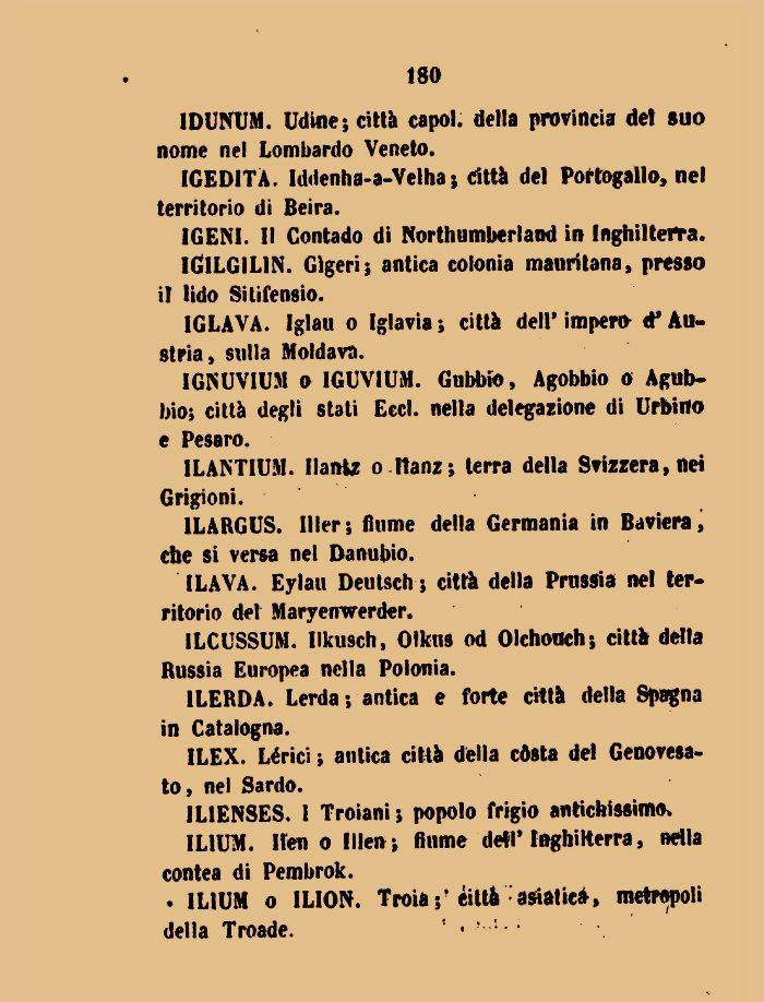 IGiNUVIUM o IGUVIUM. Gubbio, Agobbio o Agub-bio; città degli stati Eccl. nella delegazione di Urbino e Pesaro.
