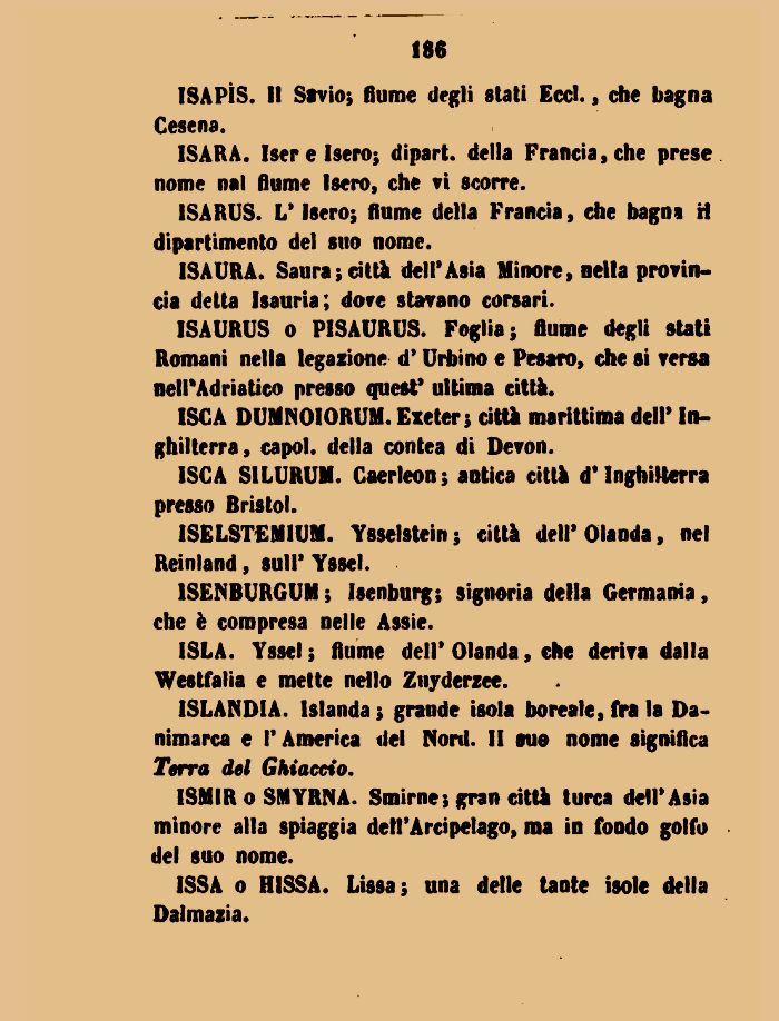 ISAPÌS. Il Savio; fiume degli stati Eccl., che bagna Cesena.