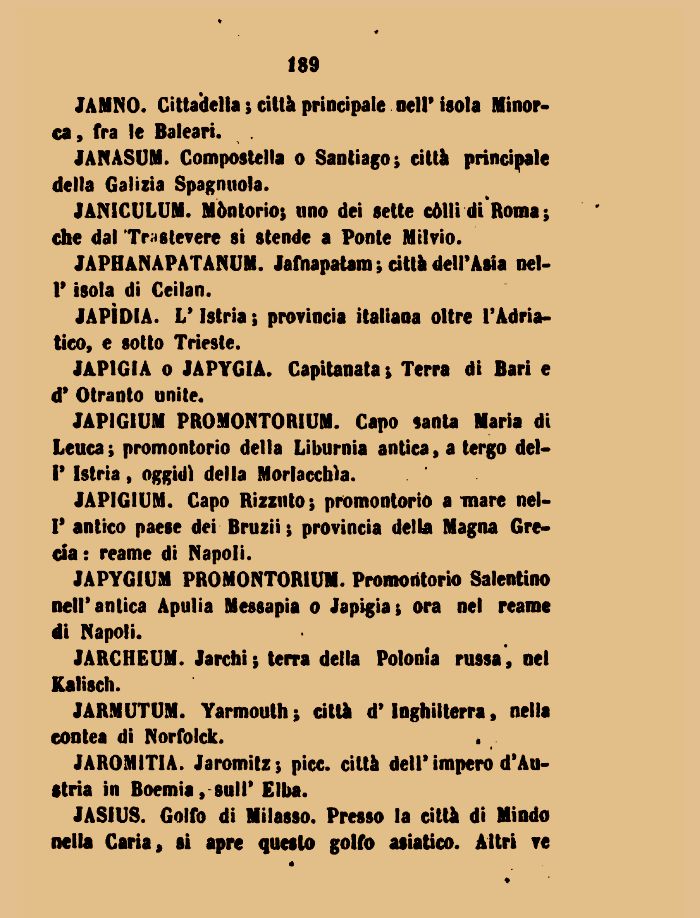 JAPIGIUM. Capo RizziitO; promontorio a mare nel-V antico paese dei Bruzii ; provincia della Magna Grecia: reame di Napoli.