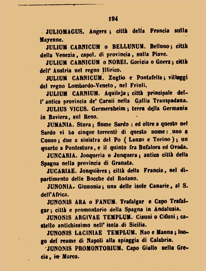 JULIUM CARNICUM o BELLUNUM. Belluno; città della Venezia, capol. di provincia, sulla Piave.