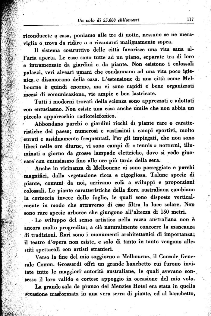Verso la fine del mio soggiorno a Melbourne, il Console Generale Comm. Grossardi offrì mi grande banchetto cui furono invitate tutte le maggiori autorità australiane, le quali avevano concesso il loro valido e cortese appoggio in occasione del mio volo.
