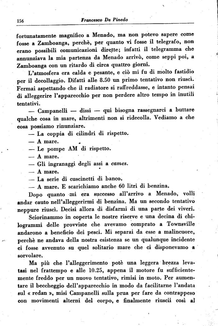 — Campanelli — dissi — qui bisogna rassegnarci a buttare qualche cosa in mare, altrimenti non si ridecolla. Vediamo a che cosa possiamo rinunziare.