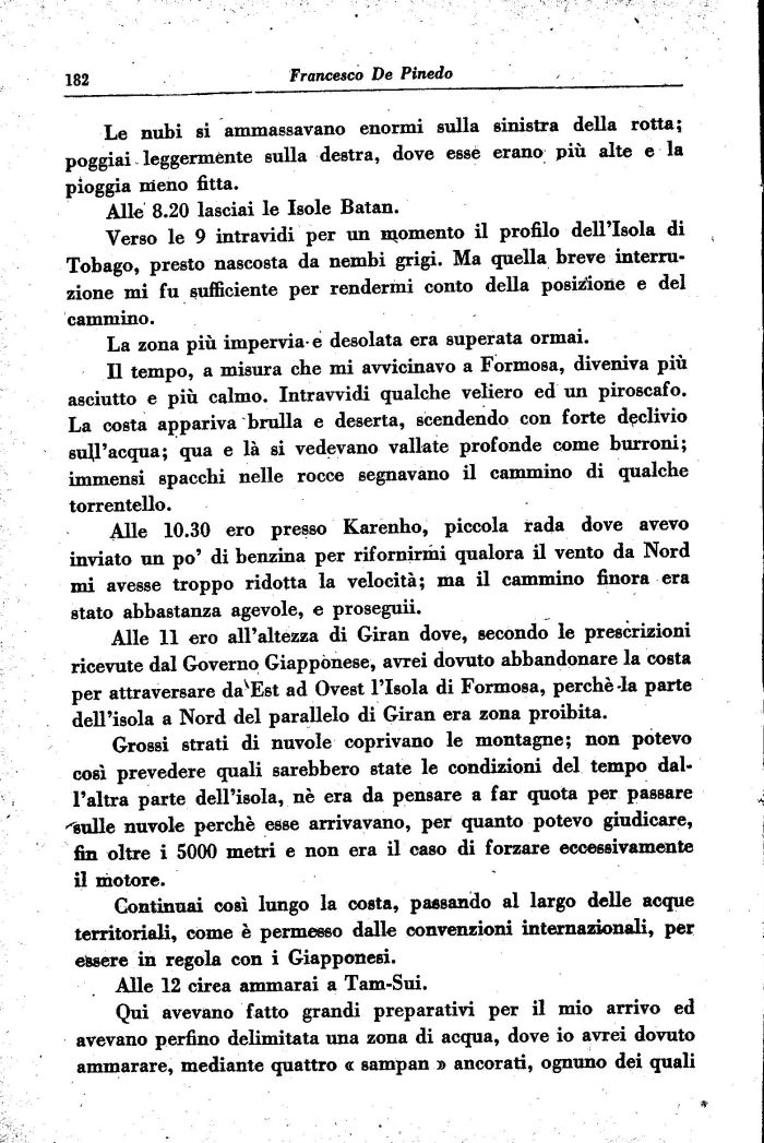 Alle 11 ero all'altezza di Giran dove, secondo le prescrizioni ricevute dal Governo Giapponese, avrei dovuto abbandonare la costa per attraversare davEst ad Ovest l'Isola di Formosa, perchè -la parte dell'isola a Nord del parallelo di Giran era zona proibita.