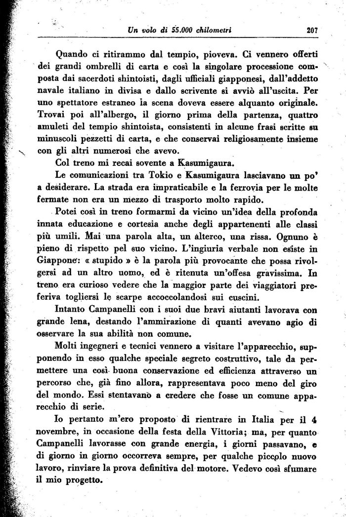 Io pertanto m'ero proposto di rientrare in Italia per il 4 novembre, in occasione della festa della Vittoria; ma, per quanto Campanelli lavorasse con grande energia, i giorni passavano, e di giorno in giorno occorreva sempre, per qualche piccplo nuovo lavoro, rinviare la prova definitiva del motore. Vedevo così sfumare il mio progetto.
