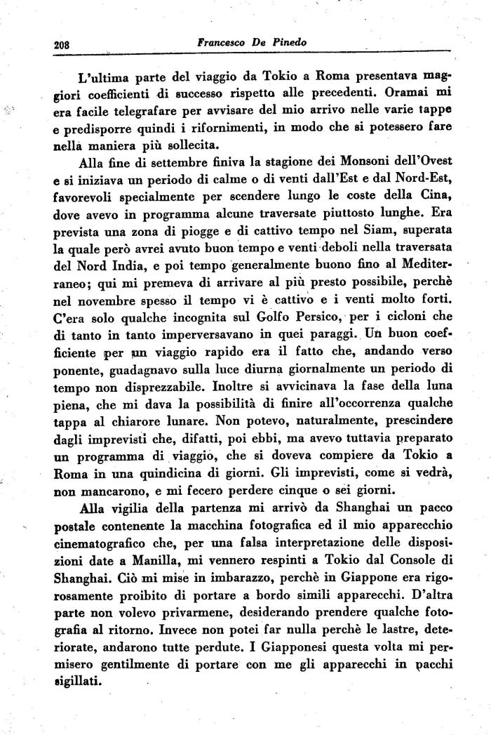 L'ultima parte del viaggio da Tokio a Roma presentava maggiori coefficienti di successo rispetta alle precedenti. Oramai mi era facile telegrafare per avvisare del mio arrivo nelle varie tappe e predisporre quindi i rifornimenti, in modo che si potessero fare nella maniera più sollecita.
