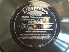 3 Dischi a 33 giri (flessibili e delle dimensioni di un 45) ) pubblicati da "L'Espresso" della collana "Documenti: Storia di una repubblica attraverso la voce dei protagonisti" commentata da Giorgio Bocca. Serie dei dischi n. 1-3-4