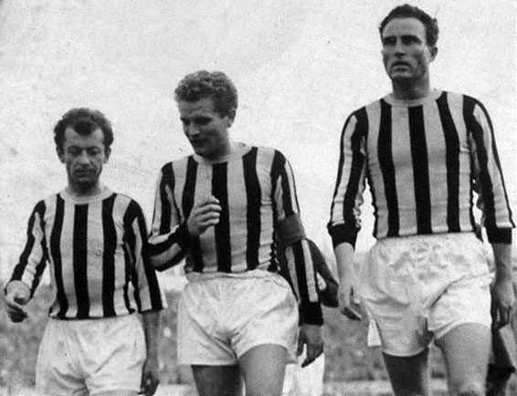 Il trio d'attacco della Juventus è Muccinelli Boniperti e John Hansen |