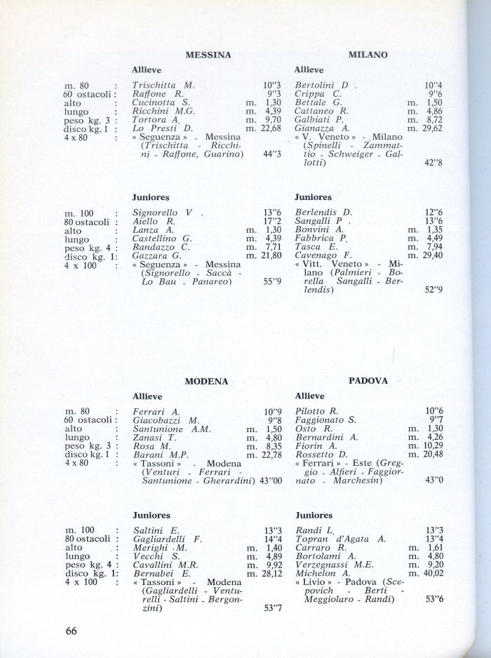 80 ostacoli Aiello R. 17'2 Sangalli P . 13'6